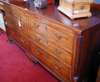 with ledge back above hinged top and four false drawers above two drawers below, enclosed by inset reeded quarter columns on ogee bracket feet