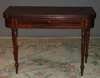 the oblong top with rounded corners and a reeded edge above a frieze drawer, on turned legs