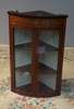 the moulded cornice above inlaid frieze and two glazed bowed doors, enclosing shelves