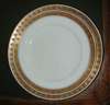 no G1241, the white ground with gilt banding and red triangular panels, cmoprising: tureens and covers, a circular tureen, two oval meat dishes, five graduated oval ashets, four oval serving plates and covers, sixty dinner plates, seventeen plates and eleven soup plates, a lot