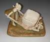 A Royal Dux figure group of a young girl pushing a wheel barrow