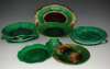 also a collection of green glazed leaf moulded plates and a single tazza, a lot
