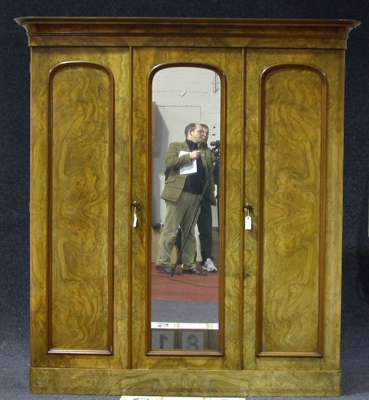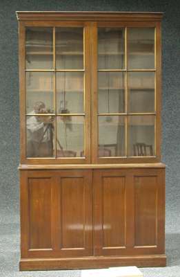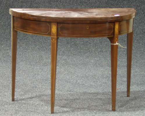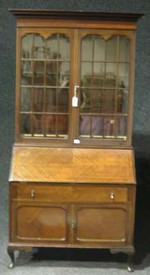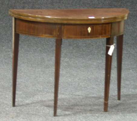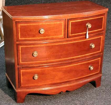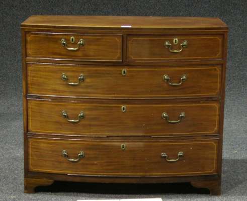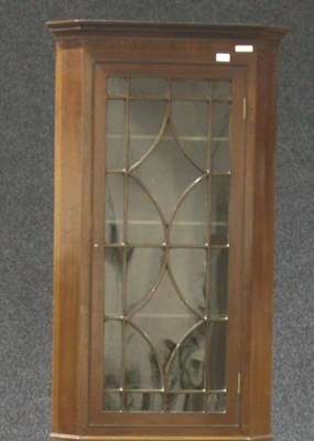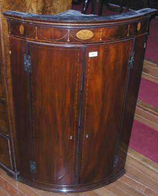 A George III mahogany and chequer strung bowfront corner cupboard,