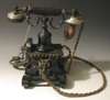 with hand crank generator and integral bells, fitted with correct chemically blackened cradle and handset with alluminium cased mouth and earpiece both with ebonite fittings, the earpiece with Ericsson trade mark and National Telephone Co. No. 28 stamping, the frame in unlined black enamel