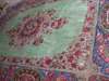 the pistachio field with central scrolling and floral medallion, similar floral spandrels, within blue floral cartouche border