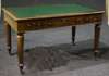 the rectangular top over three drawers opposing dummy drawers on turned legs,