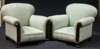 each upholstered in pale blue silk damask, with carved frames and bun feet (2)