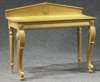 shaped upstand, the top with moulded edge, cavetto frieze and scroll front legs,