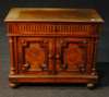 the rectangular top above a single fluted drawer above two panelled doors on turned legs,