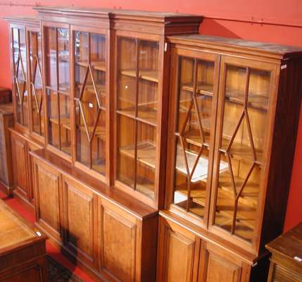 AN EDWARDIAN mahogany DOUBLE breakfront bookcase, †