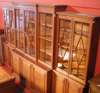 the projecting cornice above three astralglazed doors, enclosing twelve adjustable shelves, above three panel doors on plinth base