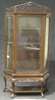 the pierced fretwork cornice above single glazed door, flanked by two glazed panels, on cabriole legs, with shaped apron, joined by an undershelf,
