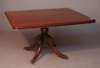 the moulded rounded rectangular top, on baluster turned column and four downswept legs with brass caps and castors