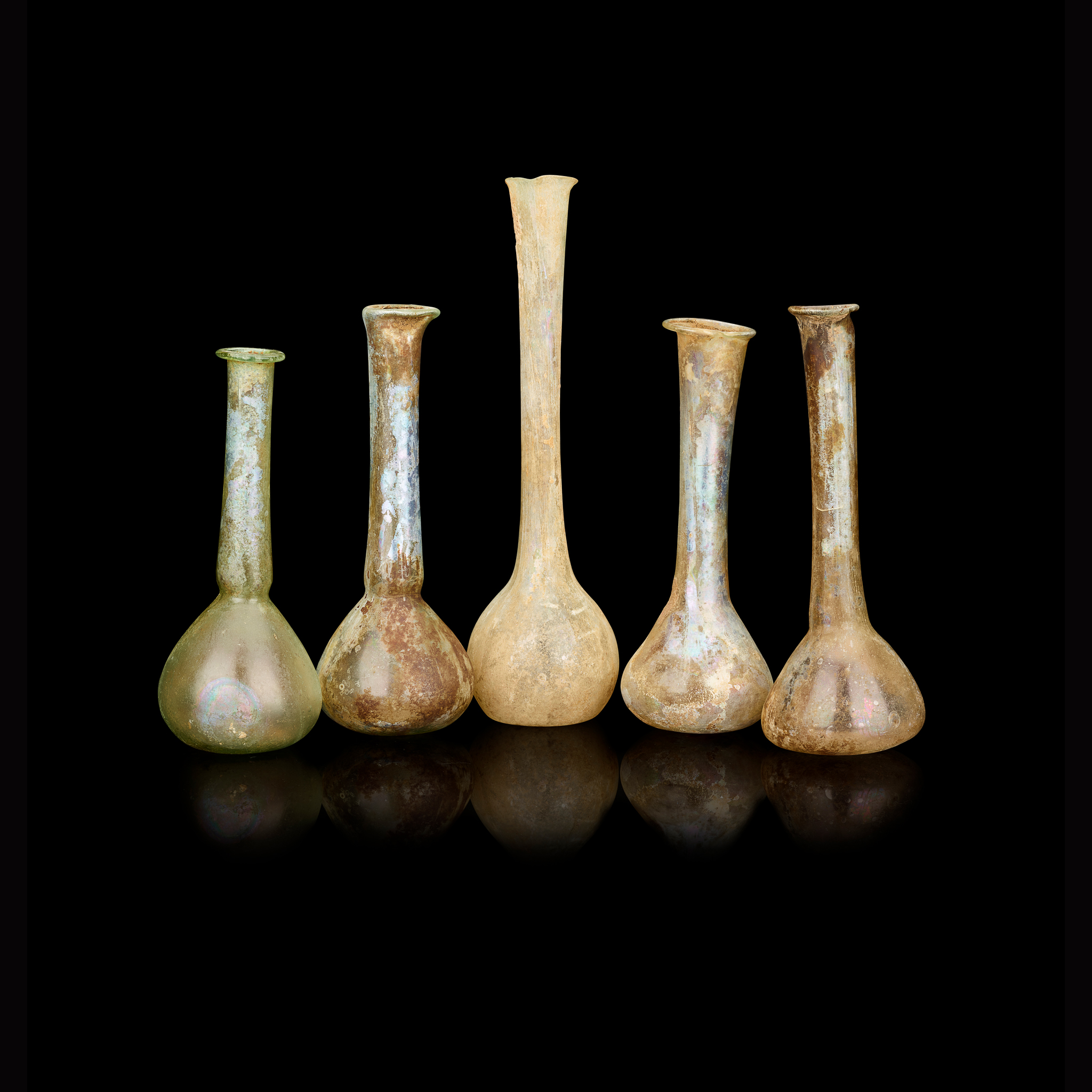 all with tall, slender necks over bell-shaped bodies, rich iridiscence (5)
