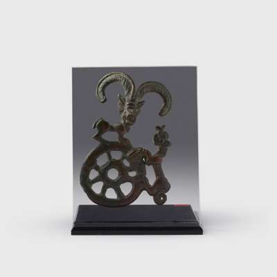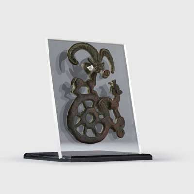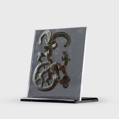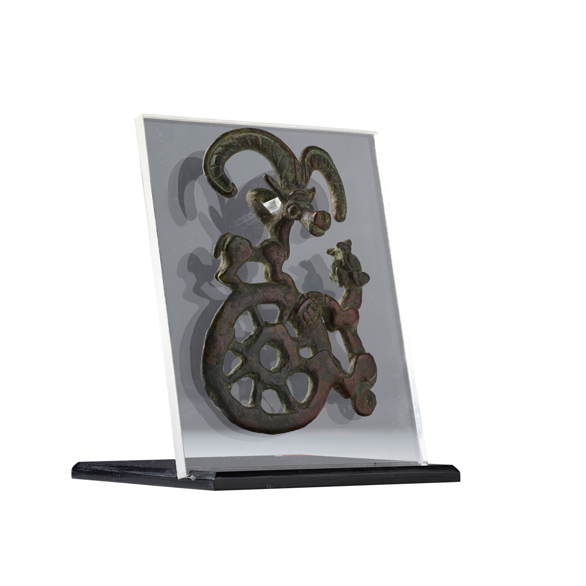 Whilst the present piece is thought to have had a practical purpose, the ancient artist has transformed it into a dynamic work of art. Scholars have also engaged in extended debate regarding the symbolism behind such objects. This particular image of the mouflon, with its exaggerated horns, is an extremely ancient motif within Lorestan and western Asia more widely, appearing in ornamental objects, pottery and pendants, it was even depicted in the petroglyphs found at Golpayegan dating to 5000 B.C.