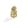 nephrite, the ornament with carved features, the head angled and arms shown held to the legs, eye inlaid with shell