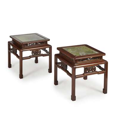 PAIR OF HARDWOOD LOW TABLES