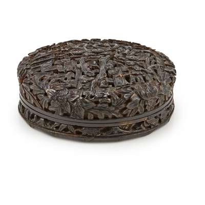 CARVED TORTOISESHELL CIRCULAR BOX AND COVER