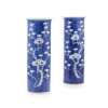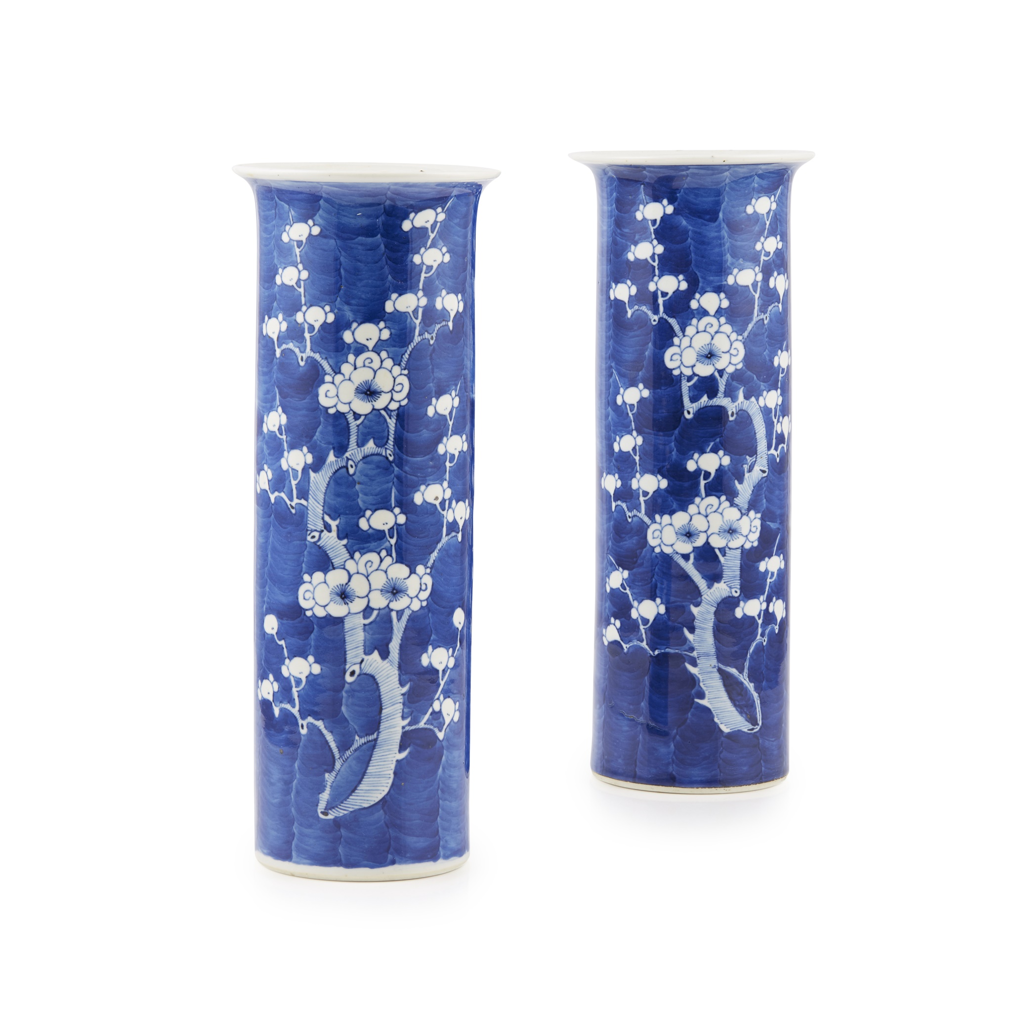 PAIR OF BLUE AND WHITE 'CRACKED ICE AND PRUNUS' CYLINDRICAL VASES