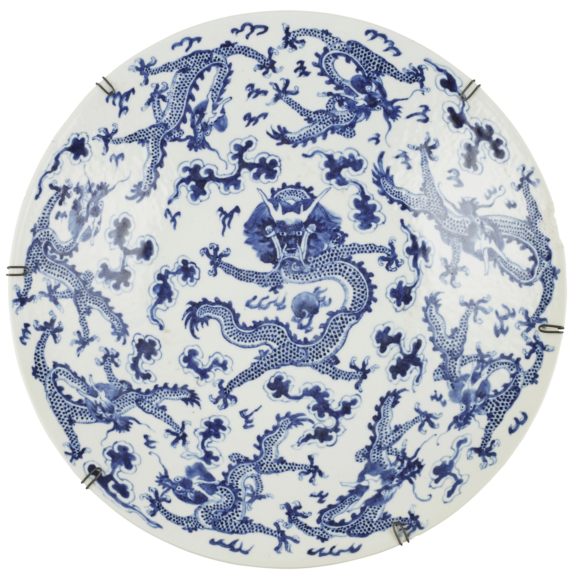 BLUE AND WHITE 'NINE DRAGONS' CHARGER