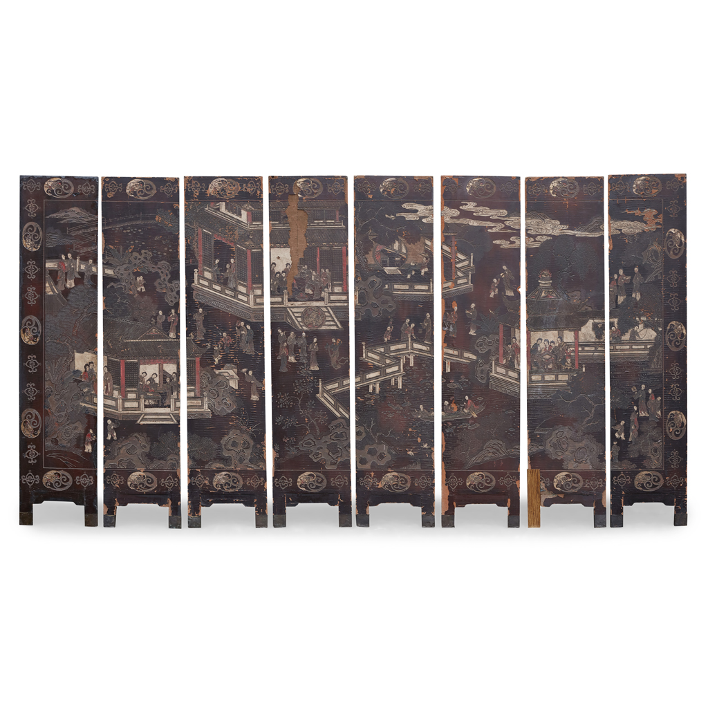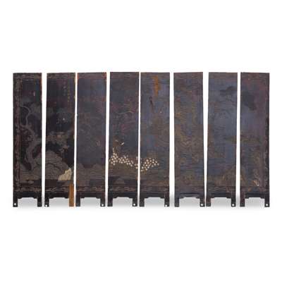 COROMANDEL AND LACQUER EIGHT PANEL FLOOR SCREEN