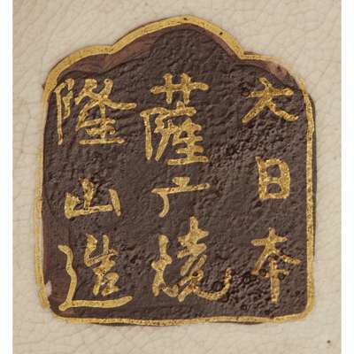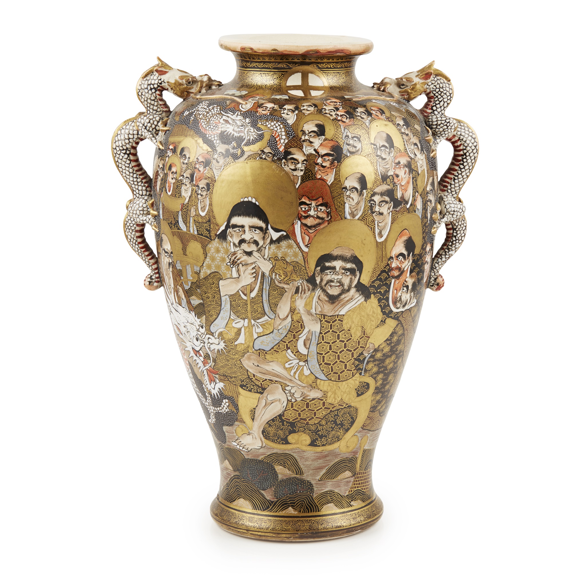of baluster shape, slight everted rim, the body with well modelled climbing dragons, the vase decorated with 100 figures, the base with a six-character mark of Ryuzan on a brown panel