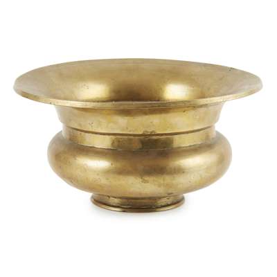 the large everted rim with reserves inscribed with script, tapering to a waisted collar and rounded base