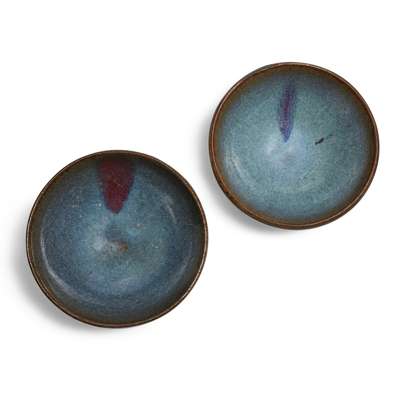 元或更晚 鈞窯藍釉紫斑碗(兩件)
