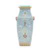 清 天藍地粉彩纏枝花福壽紋獸耳方瓶