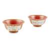 耕讀山房款 珊瑚紅釉粉彩描金開窗御題詩人物紋碗(一對)