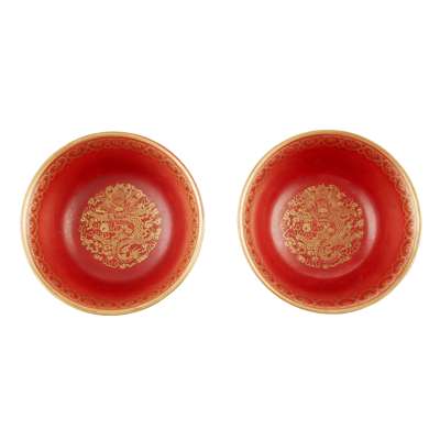 PAIR OF IRON-RED BOWLS