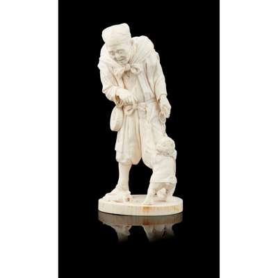 JAPANESE IVORY OKIMONO OF A MONKEY TRAINER Y