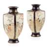 明治 揇部款 薩摩燒開窗描金人物紋對瓶