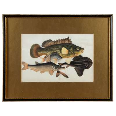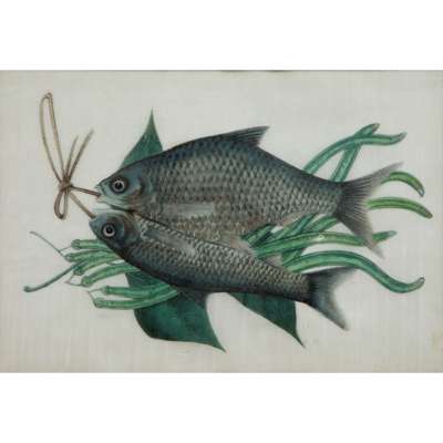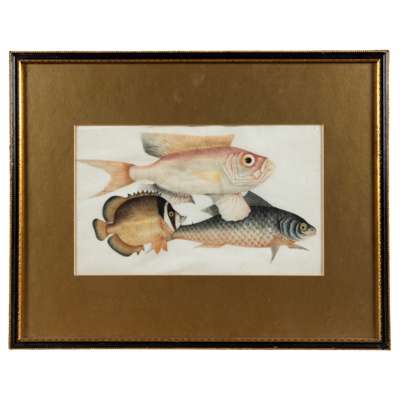 GROUP OF THREE PITH PAINTINGS OF FISHES