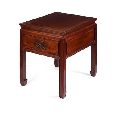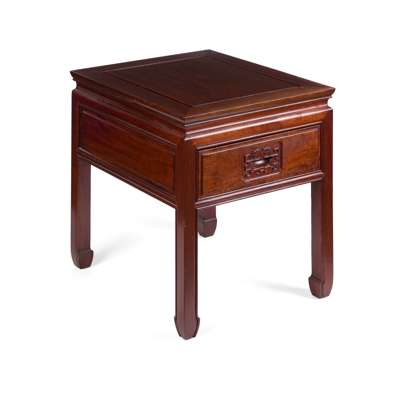民國 紅木有束腰帶屜馬蹄足方几(兩件)