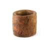 the cylindrical body supported on three shallow feet, the slightly convex sides carved in low relief with gnarled prunus and various flowers to one side, a poem followed by inscriptions to the other, indicating the piece was carved in August in the year of Ding Chou (1817) by Juan Pu
