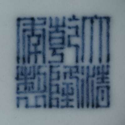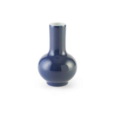the globular body rising to a long cylindrical neck, covered overall with a deep blue glaze, the base inscribed with a six-character Qianlong mark in underglaze blue