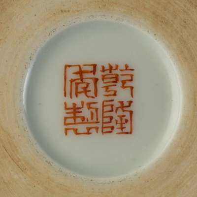 of cylindrical form, finely potted imitating a section of bamboo with ribbed sides and decorated to the exterior with bamboo sprays, the base inscribed with a four-character Qianlong mark in iron red