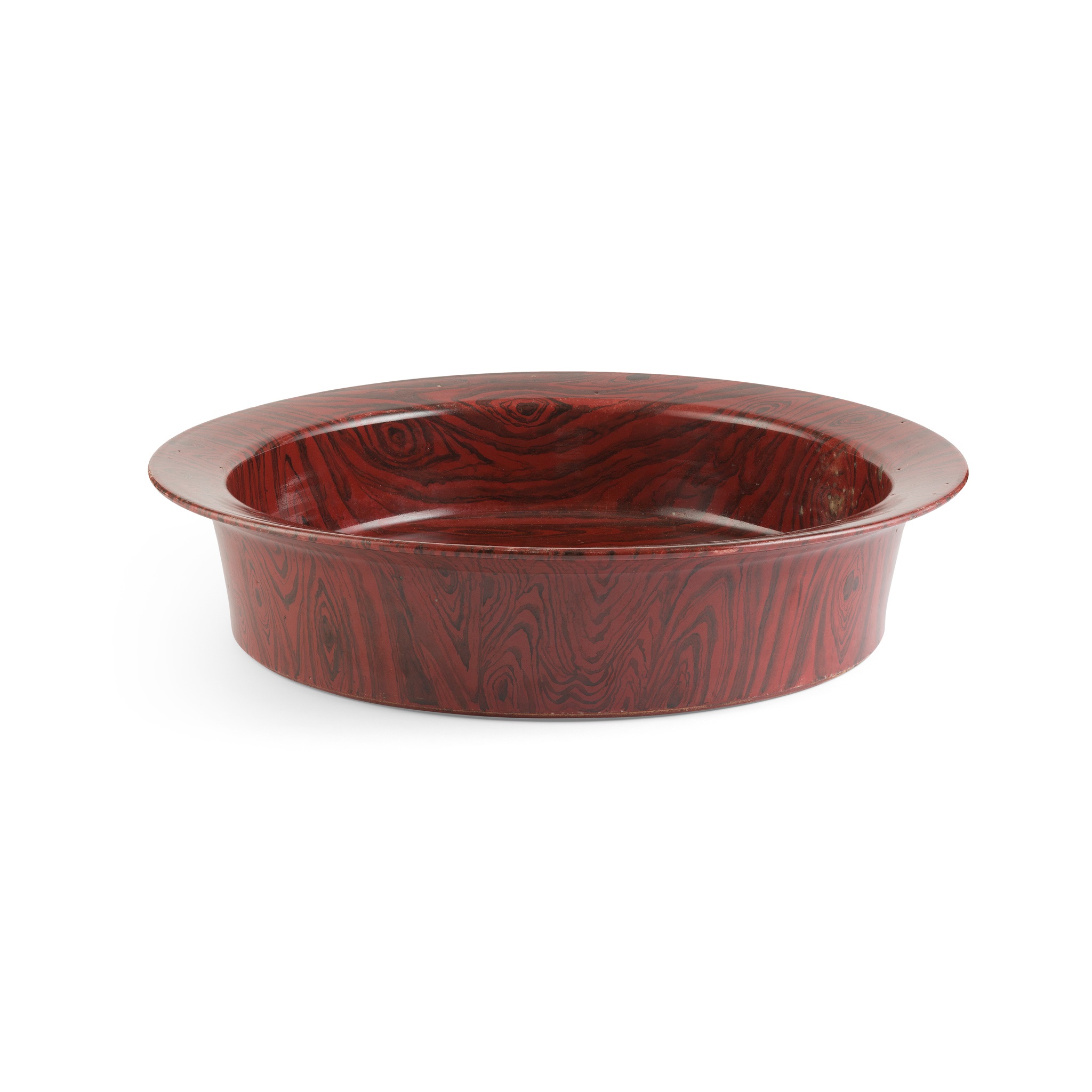 BROWN-GLAZED 'IMITATION WOOD' PORCELAIN BASIN