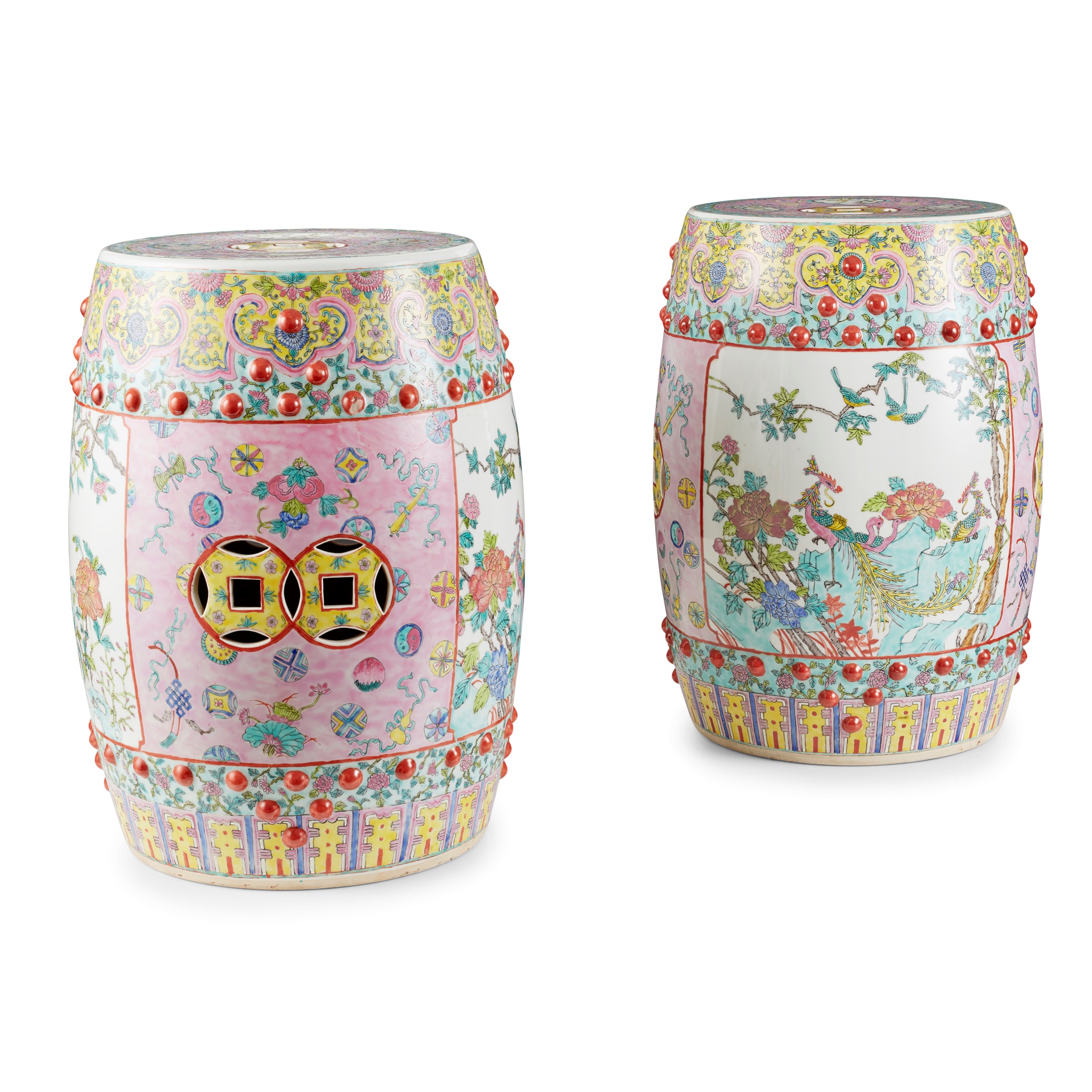PAIR OF FAMILLE ROSE GARDEN SEATS