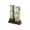光緒款 粉彩花鳥紋獸耳透雕方瓶帶木座(兩件)