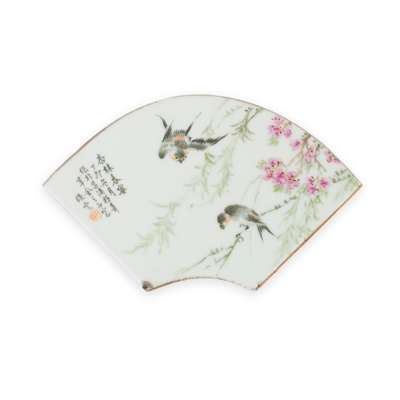 QIANJIANG ENAMELLED AND INSCRIBED PORCELAIN FAN-SHAPED PLAQUE