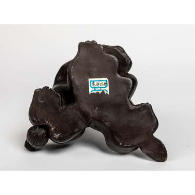 二十世紀 顧亞勤款 紫砂'時來運轉'雙獅戲球擺件