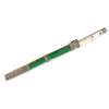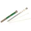comprising: a knife, a pair of chopsticks and a green painted case, the case partly wrapped by white metal repoussé and chased with stylised tendrils and lotus, the bone-handled knife cast with shou characters to both sides, the bone chopsticks of slightly tapered cylindrical form