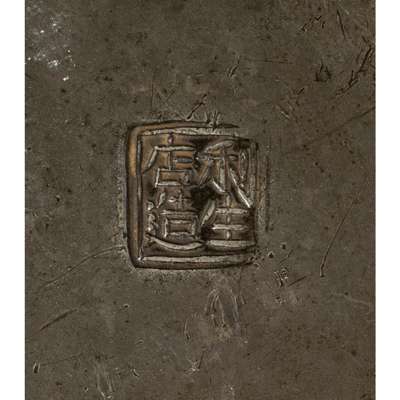 清 錫製茶罐五件組及嵌銅錫製梅花型套座