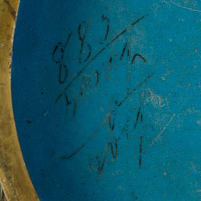 清 銅胎掐絲琺瑯蝶戀花紋大碗帶黃銅座
