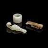 明至二十世紀 白玉雕鳳形帶鉤、白玉扳指及黃白玉劍璏(一組三件)