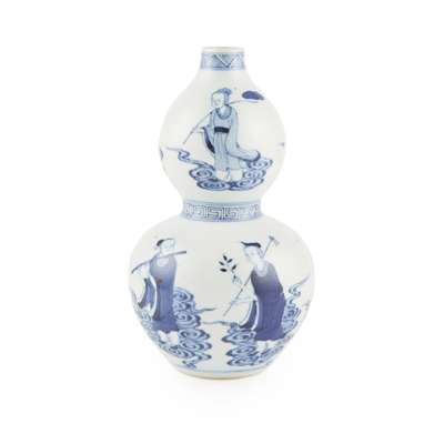 BLUE AND WHITE 'EIGHT IMMORTALS' DOUBLE GOURD VASE