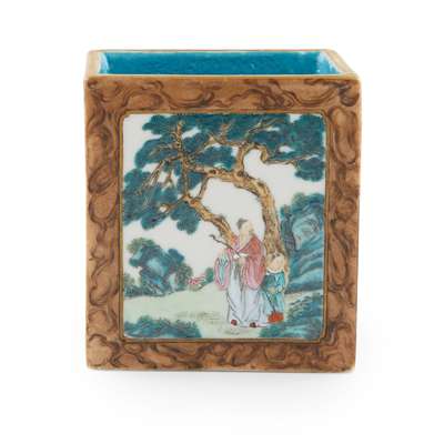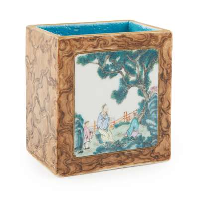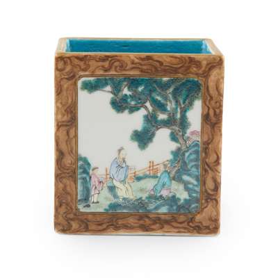 FAMILLE ROSE RECTANGULAR BRUSH POT