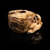 carved in round in the form of a large lotus pod, supported by leafy stems, decorated with a mantis carved in openwork on one side, an inset in high relief on the top nearby the aperture